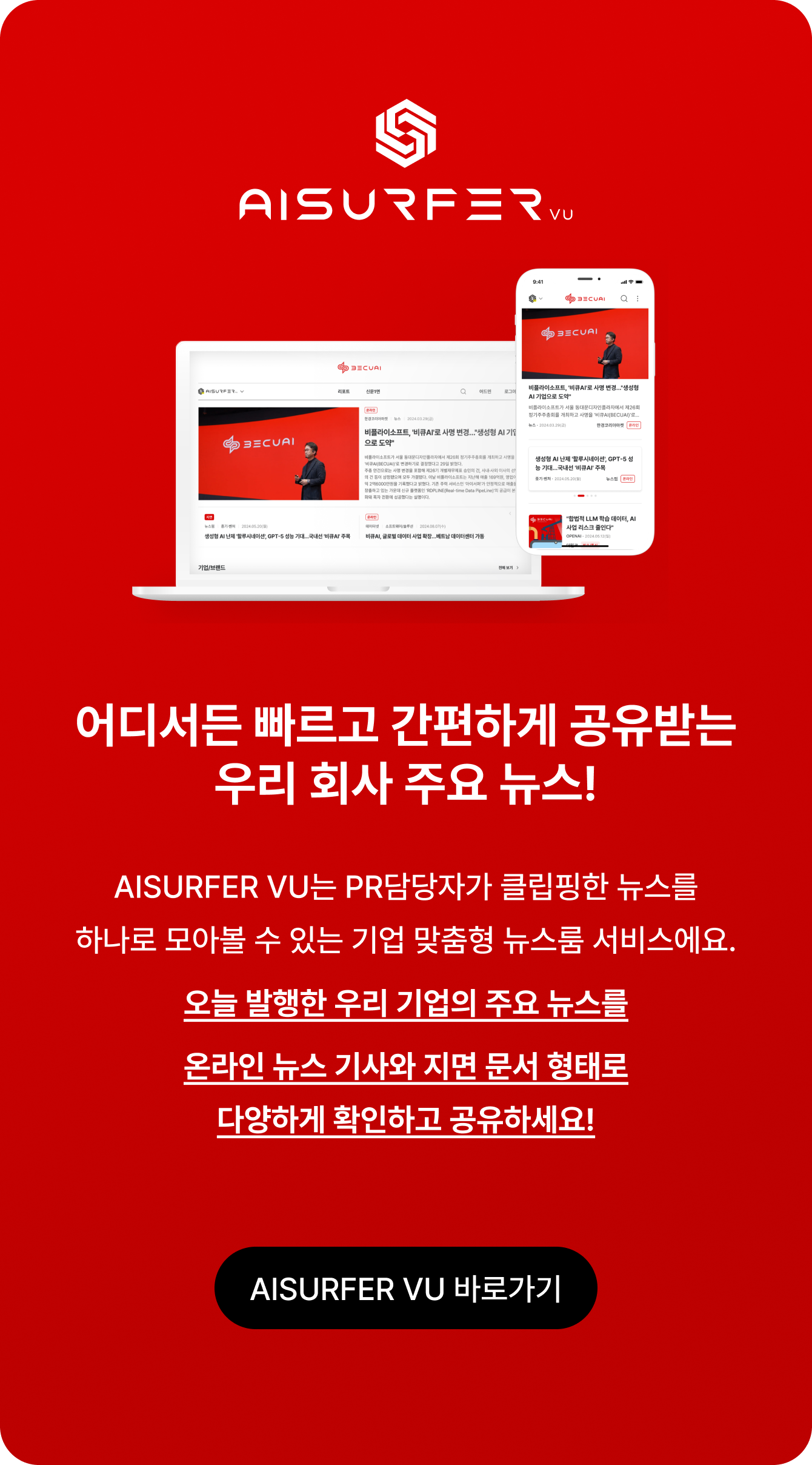 국내 최고의 뉴스 데이터 플랫폼 아이서퍼!이제 AI 에이전트를 탑재한 “AI서퍼”로 새롭게 탄생합니다.